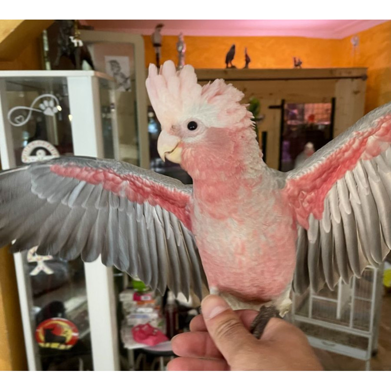 Notre ferme d'élevage propose uniquement des cacatoès rosalbins EAM (élevés à la main), sexés par ADN, avec certificats légaux (CITES) et contrôle vétérinaire avant expédition.