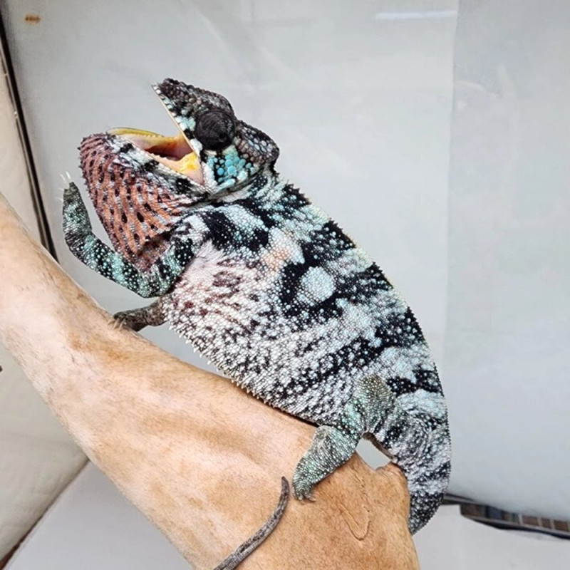 Originaire de Madagascar, le Furcifer pardalis "Nosy Be" est un caméléon panthère aux teintes turquoise spectaculaires. Spécimen né en captivité, idéal pour les amateurs de reptiles exotiques à la recherche d’un animal arboricole fascinant, à observer dans un environnement tropical bien conçu. Livraison rapide et sécurisée dans tous les pays de l'Europe.