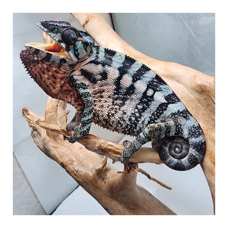 Originaire de Madagascar, le Furcifer pardalis "Nosy Be" est un caméléon panthère aux teintes turquoise spectaculaires. Spécimen né en captivité, pour les amateurs de reptiles exotiques à la recherche d’un animal arboricole fascinant, à observer dans un environnement tropical bien conçu. Livraison rapide et sécurisée dans tous les pays de l'Europe.