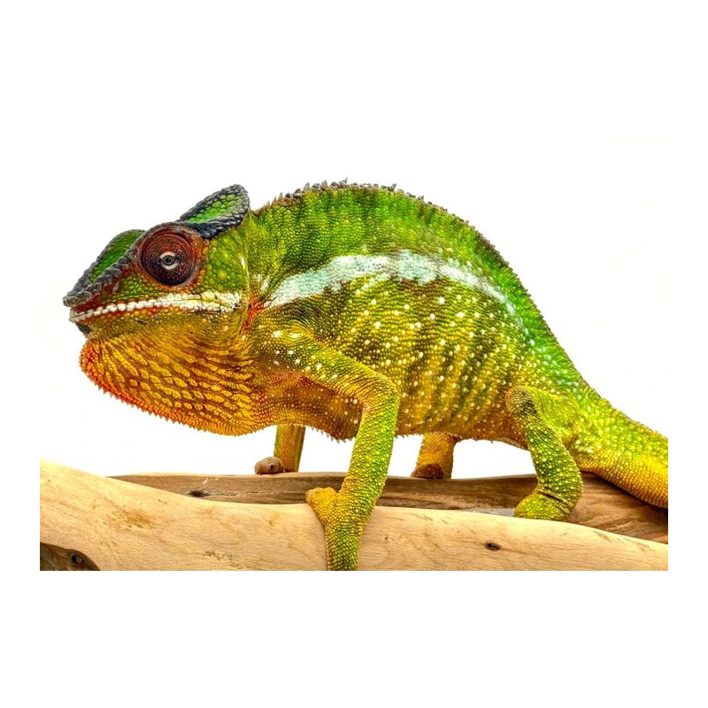 Le Furcifer pardalis "Nosy Mitsio" séduit par ses couleurs aux teintes vertes marbrées de jaune et orange, typiques de cette localité de Madagascar. Né en captivité, ce caméléon panthère est un reptile diurne fascinant, idéal pour les passionnés recherchant une espèce spectaculaire et expressive. Livraison rapide et sécurisée dans tous les pays de l'Europe.