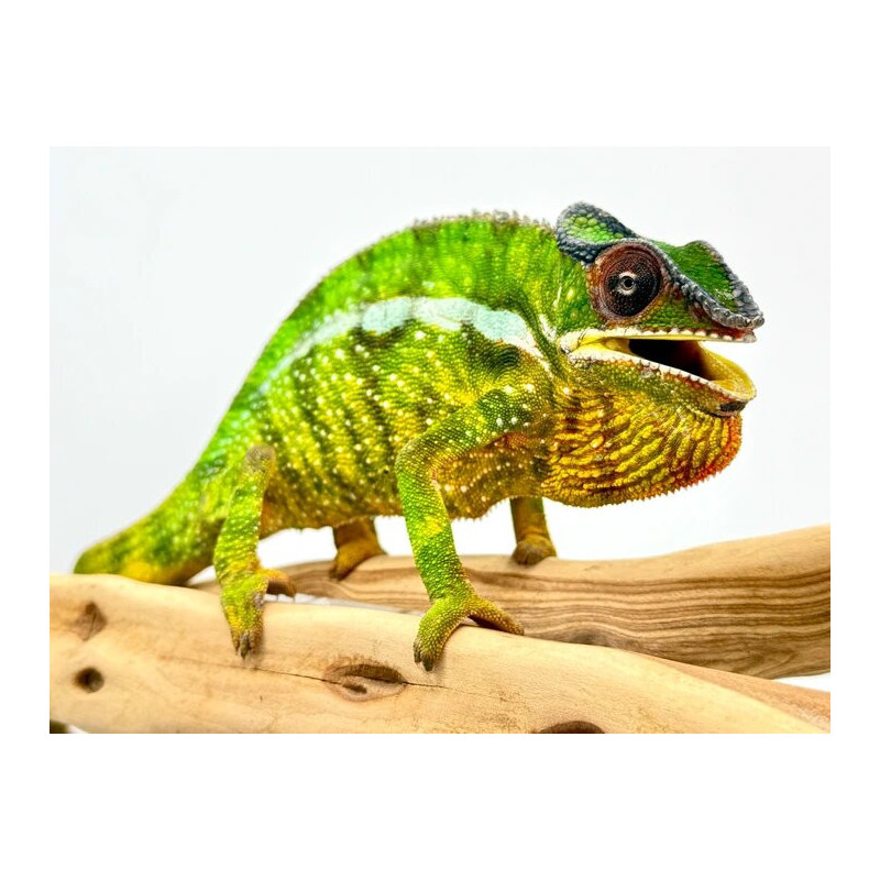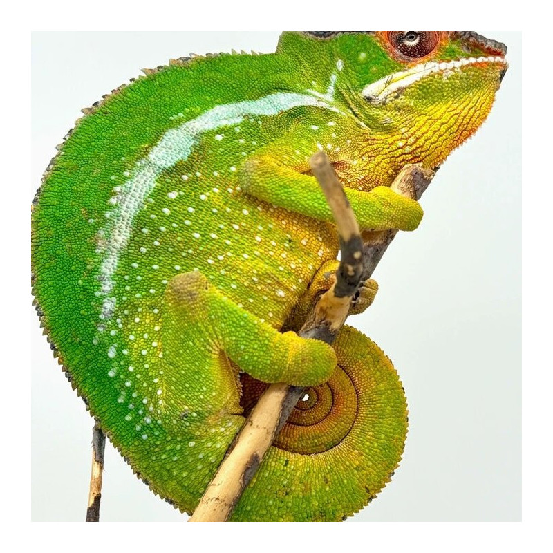 Originaire de l’île de Nosy Mitsio, au nord-ouest de Madagascar, le Furcifer pardalis "Nosy Mitsio" est l’une des localités les plus prisées du caméléon panthère. Il se distingue par ses teintes vibrantes de jaune citron, vert lumineux et parfois bleu turquoise, faisant de lui un bijou vivant pour les amateurs d’herpétologie.