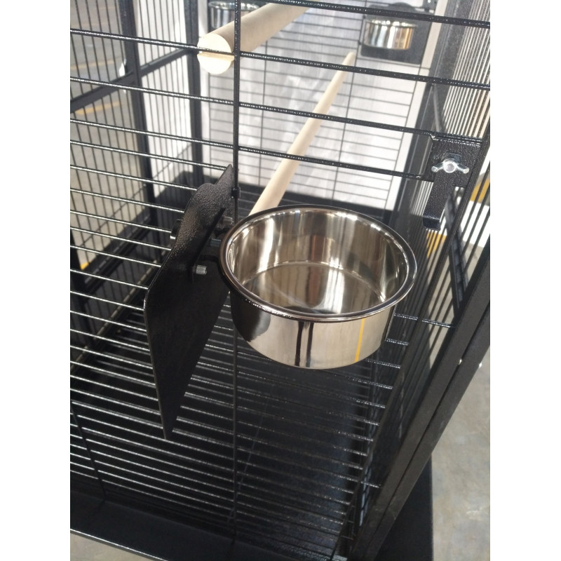 • 2 mangeoires en métal: diamètre 11cm profondeur 4cm fixées par une plaque pleine noire sécurisée